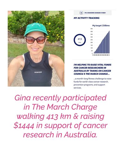 Early in 2024, Gina walked over 400km in one month raising funds for vital cancer research. In March 2025, the SEQ Comprehensive Cancer Initiative team walked 648km!